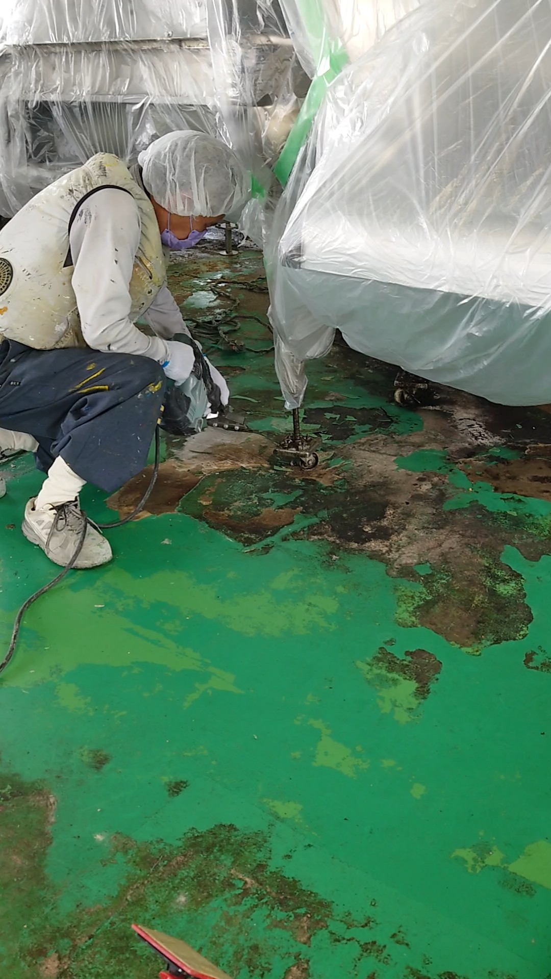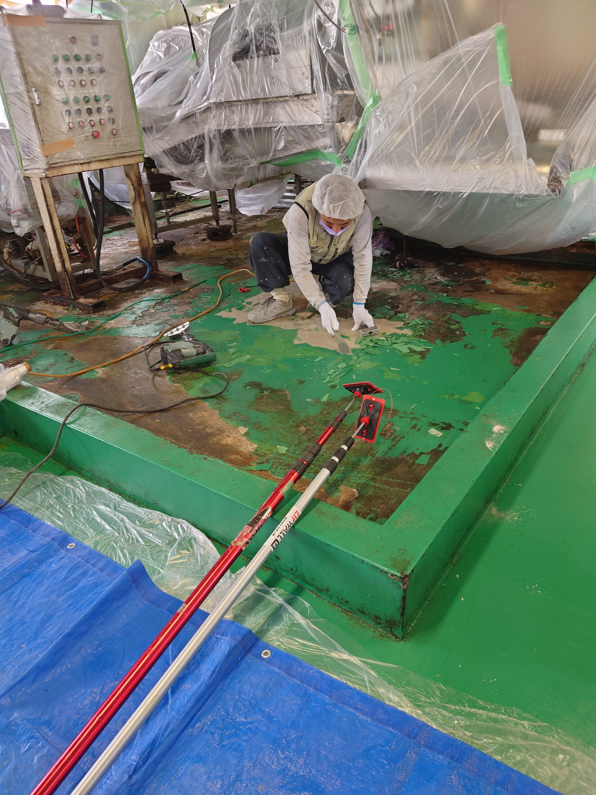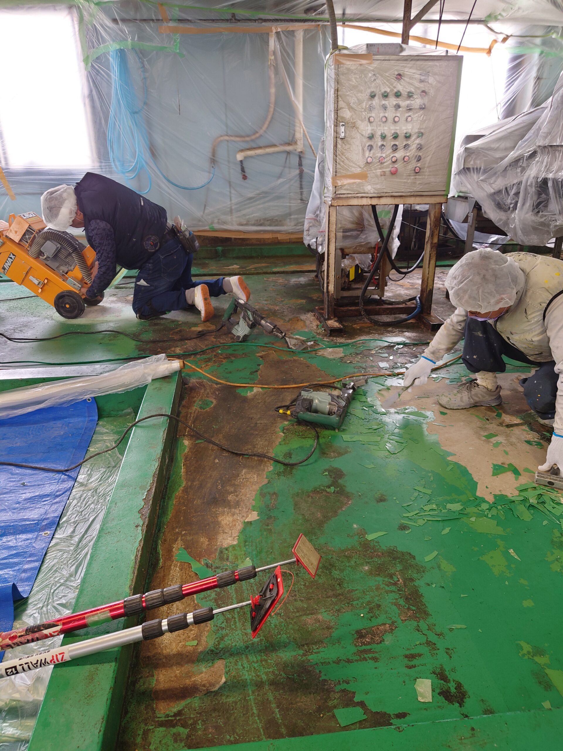 油や熱で塗膜が損傷していたため、美観性向上を目的とした床改修工事を行いました。